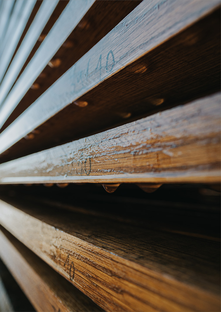 Rakija zatim odležava u barrique bačvama od slavonskog hrasta – to su posebno izrađene bačve manjeg volumena, blago do srednje tostirane iznutra, kako bi postupno otpuštale note vanilije, začina i drvenaste topline. Svaka faza zrenja odvija se prirodno, bez dodataka, boja ili umjetnih aroma.